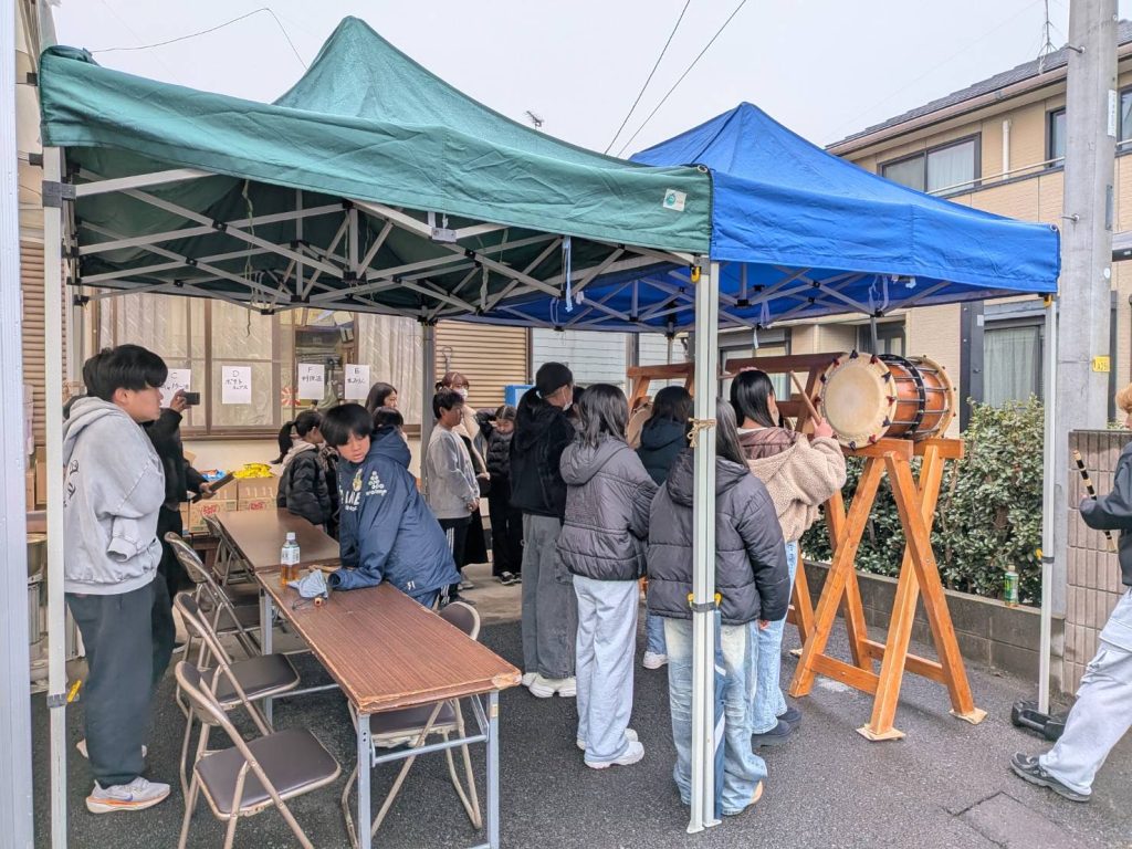 令和6年度 久喜東一丁目町会餅つき大会のオープニングでお囃子の披露を行いました。